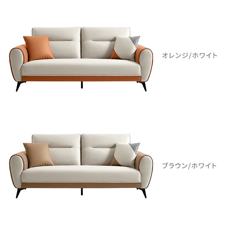 ツートンカラー3人掛けソファ クッション付き