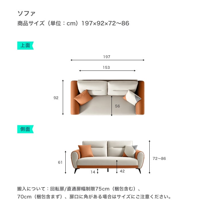 (約)197×92×72〜86cm