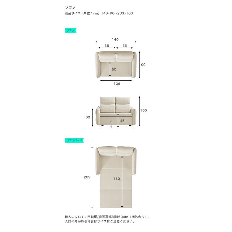 ボリュームクッションソファベッド 2人掛け