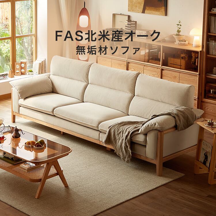 無垢材ナチュラルベージュソファ 3人掛け