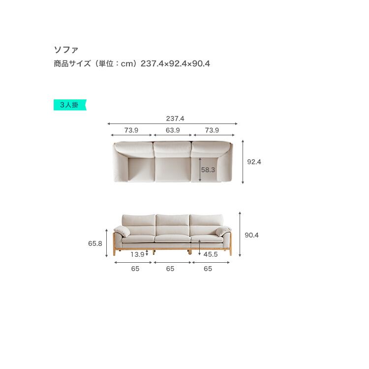 パイン材+合板+ウレタン+ポリエステル生地:3人掛け