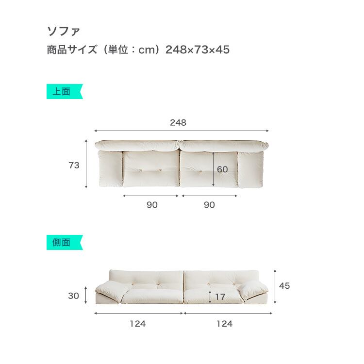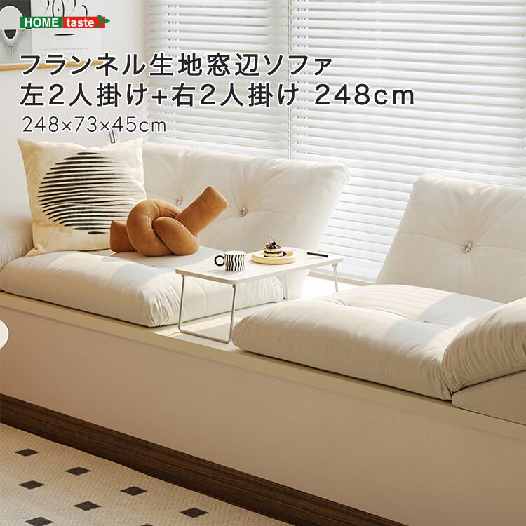 フランネル生地窓辺ソファ 左2人掛け+右2人掛け 248cm