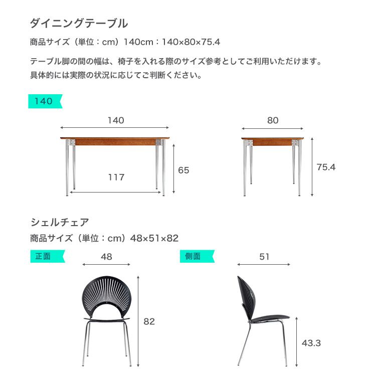 ウォールナット調ダイニングテーブル&シェルチェア(ブラック)5点セット 140cm