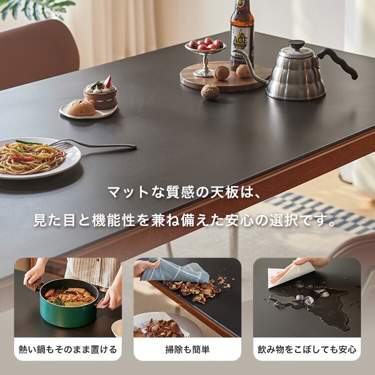 【素材】【テーブル】主要材料 ラバーウッド集成材+両面ラバーウッドメラミン板+岩板:天板