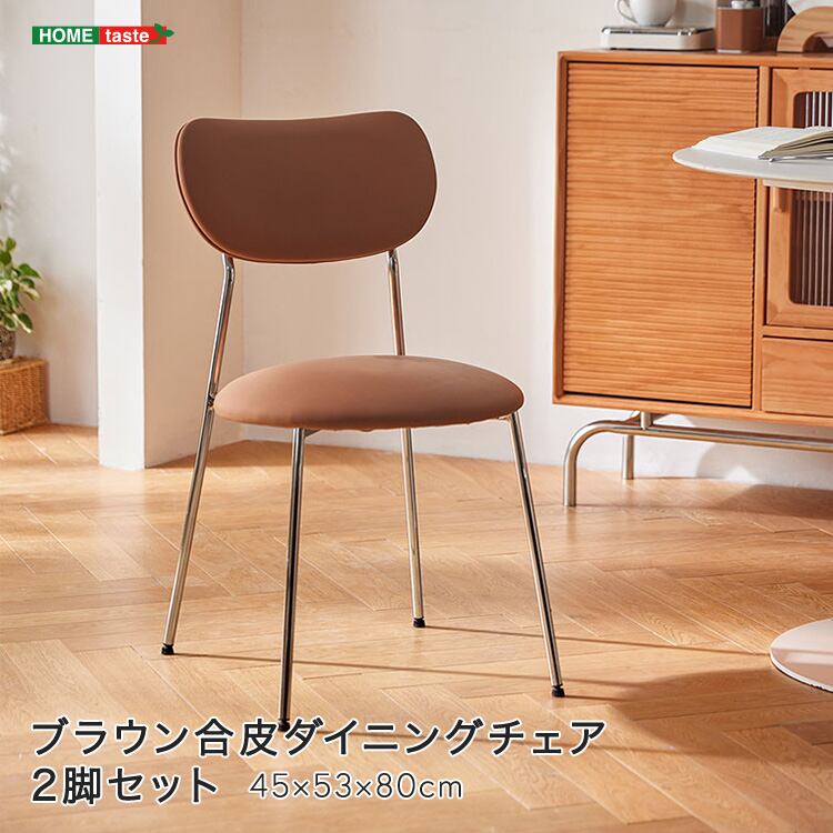 ブラウン合皮ダイニングチェア 2脚セット