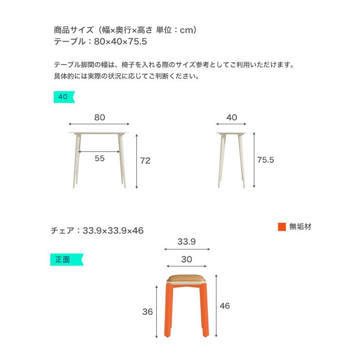 無垢材脚アイボリースツール テーブル80×40cm セット