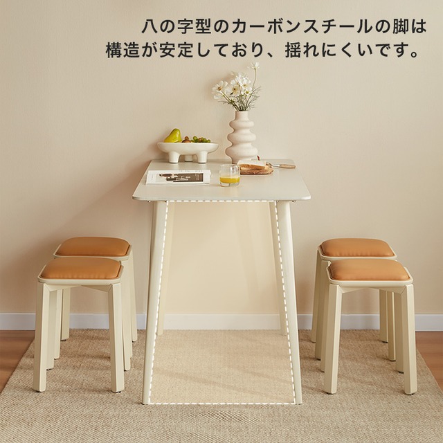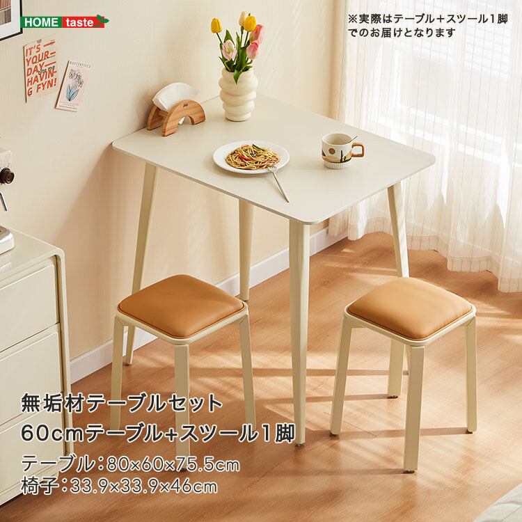 無垢材テーブルセット(60cmテーブル+スツール1脚・アイボリー)