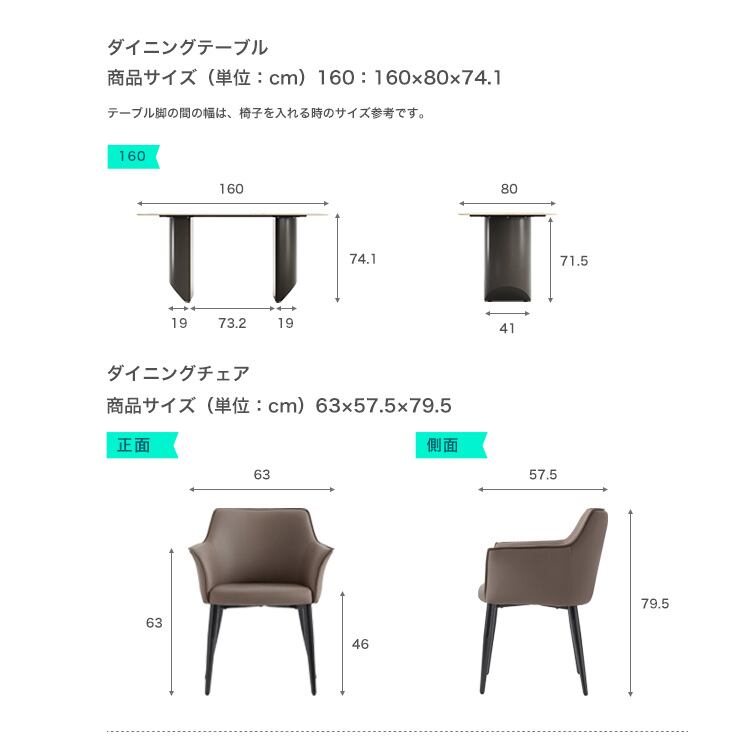 テーブル:160×80×74.1cm、チェア:63×57.5×79.5cm