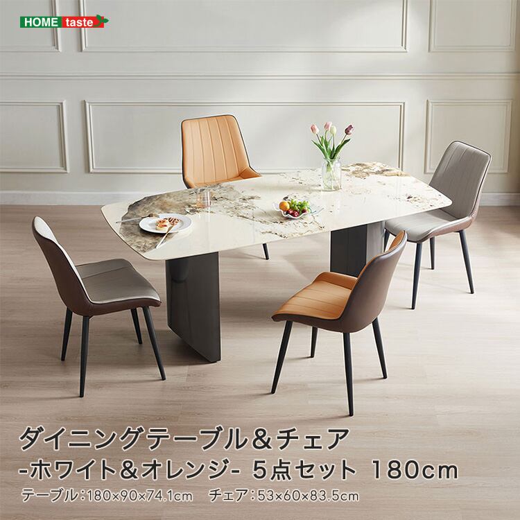 ダイニングテーブル&チェア-ホワイト&オレンジ - 5点セット 180cm