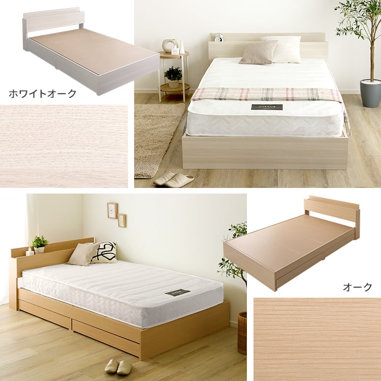 棚・コンセント付きチェストベッド 日本製ポケットコイルマットレスセット(セミダブル)