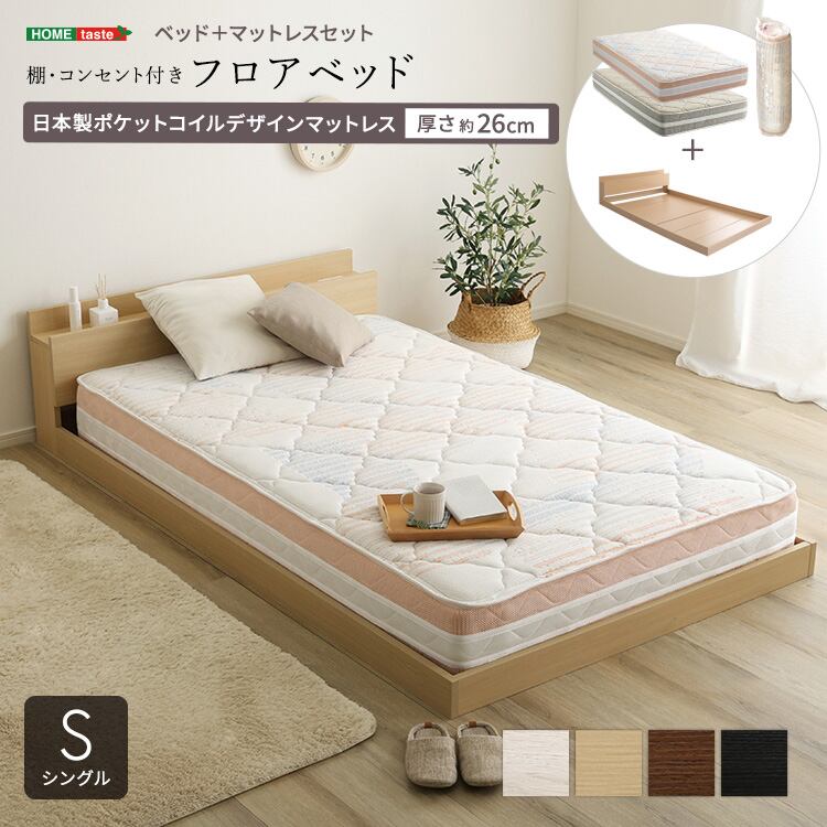 デザインフロアベッド 日本製ポケットコイルデザインマットレスセット(シングル)