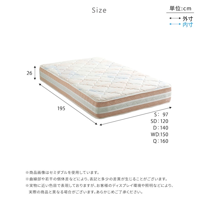 【商品サイズ】(約)幅120×奥行195×高さ26cm【コイル数:ソフト・レギュラー:589個、ハード:644個】