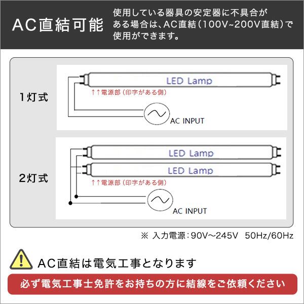AC直結にて使用される場合は、必ず電気工事士免許をお持ちの方に結線をお願いいたします。