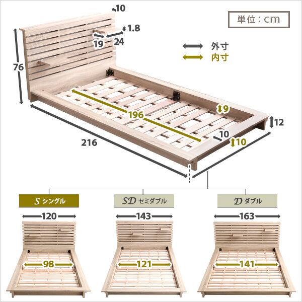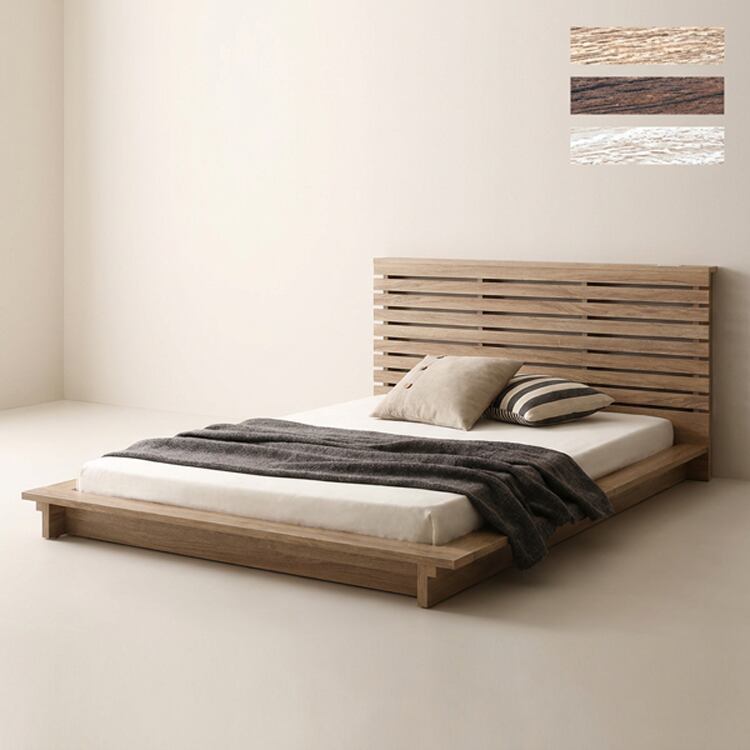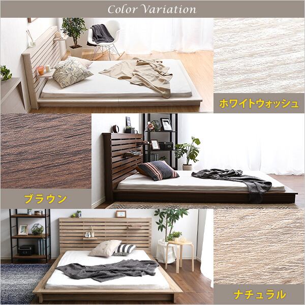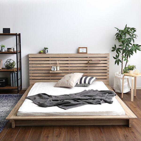 可動棚付きフロアベッド(シングル)ベッドフレーム、ロースタイル、スリムヘッドボード|Elfom エルフォム