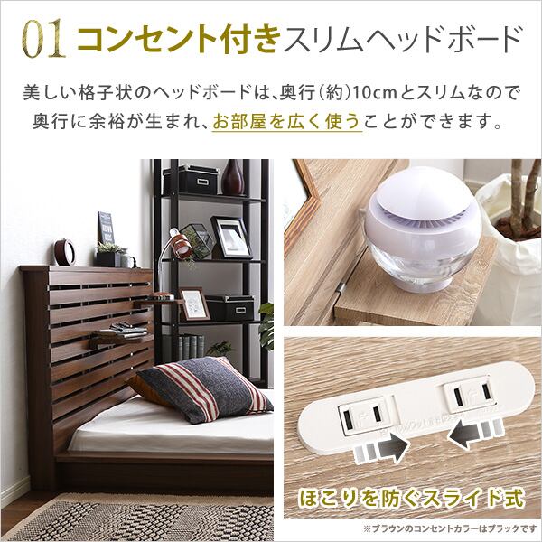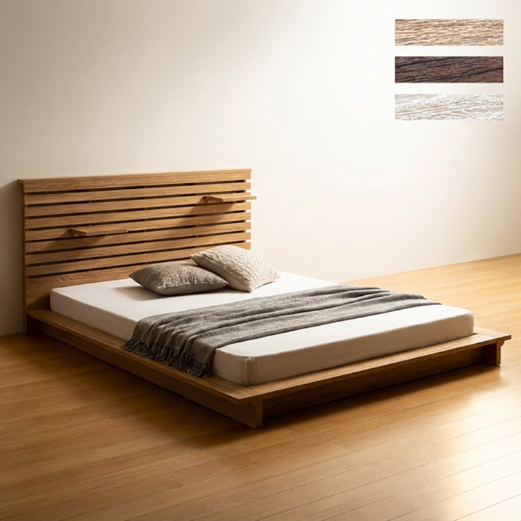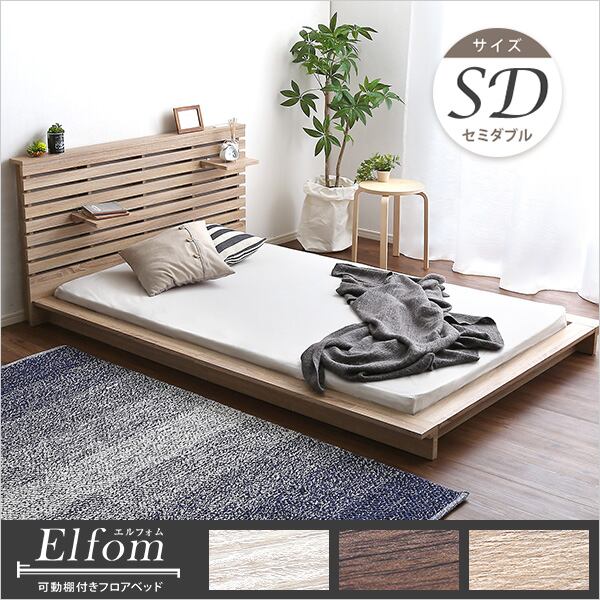 可動棚付きフロアベッド(セミダブル)ベッドフレーム、ロースタイル、スリムヘッドボード|Elfom エルフォム