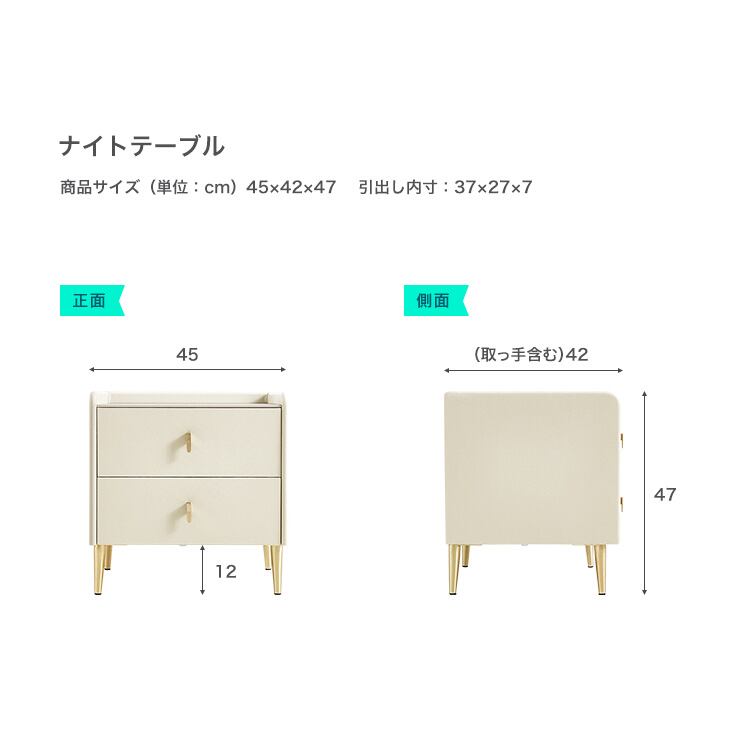 2段引き出しナイトテーブル