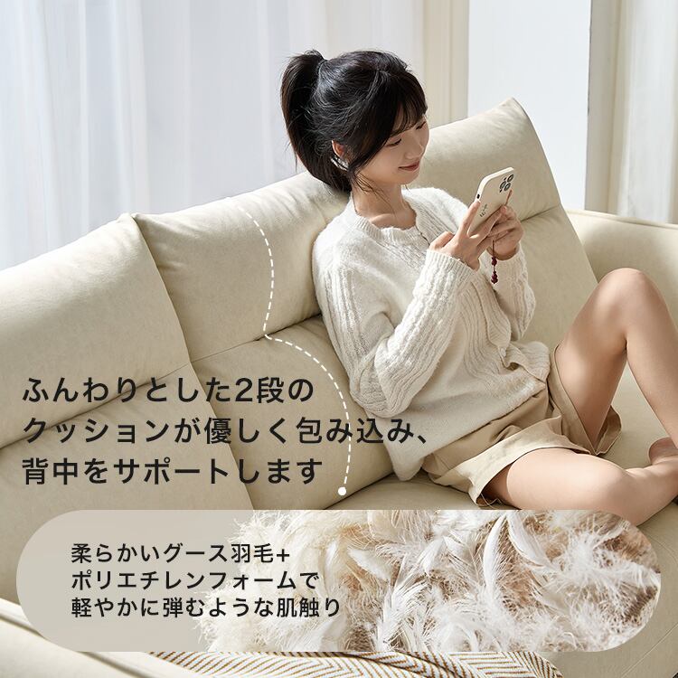 背もたれ/クッション:ポリエチレンフォーム+グース羽毛 5. 金属:スチール脚