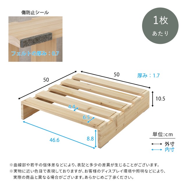 ・耐荷重はあくまでも目安となります。すのこに直接乗ったり、一点に荷重をかけると破損の恐れがあります。