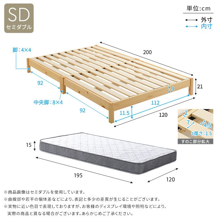 マットレスSD:(約)幅120×奥行195×高さ15cm(コイル数:336個)
