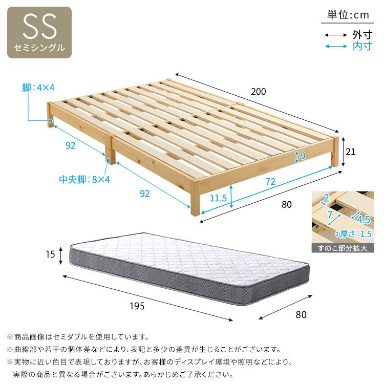 マットレスSS:(約)幅80×奥行195×高さ15cm(コイル数:252個)