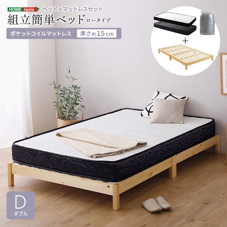 2分で完成!組立簡単ベッド ポケットコイルマットレスセット(ダブル)