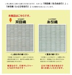 上敷きを敷くだけで畳のお部屋をリフレッシュ出来ます。日焼けしてしまった畳のリフレッシュに、新品の畳を汚さないためのカバーにご使用下さい。長さ110〜115cmの国産(九州産)い草を使用しています。そのうち約92cmを使用しています。ヘリ際はある程度白みを帯びます。(日焼けではありません、い草の根元と先端部分の色です。)い草は長いものほど高級になります。い草は先端部分が赤茶色く、根元が白く真中が青(緑)色です。真中の良質な青の部分を多く使用するほど、丈夫で綺麗な仕上がりとなります。またイ草は使用するうちに日焼けをしますが、真中の青の部分を多く使用したものほど、全体が綺麗にムラなく日焼けし、味が出ます。国産(九州産)のい草を使用しています。国産い草は一本一本が太く、表皮が厚く繊維がキメ細かいので弾力性があり、耐久性に優れています。い草には空気の清浄化作用、湿度の調節作用があり、汚れにくいといった特徴があります。い草に青森ヒバ加工を施しています。(抗菌、防臭効果)表裏の両面が使えて経済的です。