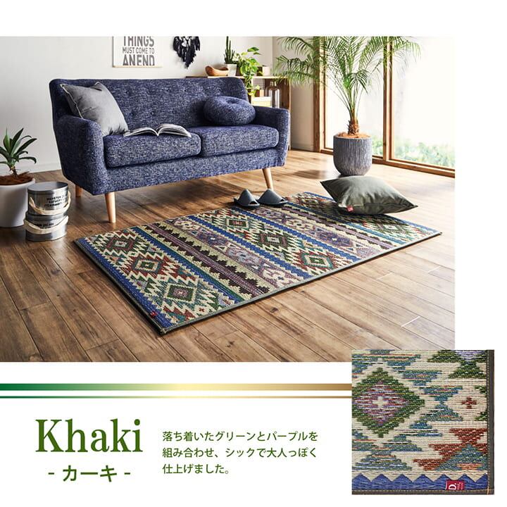 ラグ マット 純国産 国産 日本製 ウレタン カイハラデニム 抗菌防臭 自然素材 い草 キリム D-STYLE 『Fルークス』 約95×190cm