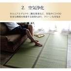 その為い草特有の機能である湿気の吸放出効果も約2倍程となり、夏場のムシムシとした湿り気を吸収してくれる他、寝転がった時の汗のべとつき感も無く、さらっとしたタッチ感とざっくりとした踏み心地がくせになる商品です。
