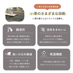 縦糸が多い為、細かく繊細で浮き上がって見えるのが特徴です。裏は滑り止め不織布付きで、滑る心配がありません。い草には空気の自然浄化作用、湿度の調節作用などがあります。い草にヒバエッセンス加工を施しています(抗菌防臭効果)。青森県のヒバの木から抽出した「ヒバ油」をメーカー独自の技術で商品に加工しました。「ヒバ油」には、ヒノキチオールという天然物質としては極めて抗菌性の高い成分が含まれ、医療や食品など多分野で利用研究が進められています。