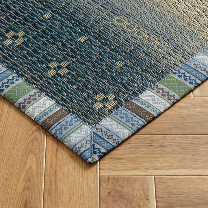 さわやかなカラーリングとグラデーションが涼しげない草ラグです。