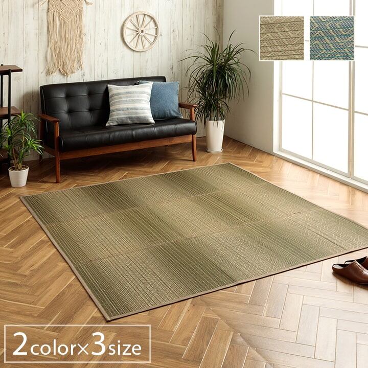 さわやかなカラーリングとグラデーションが涼しげない草ラグです。