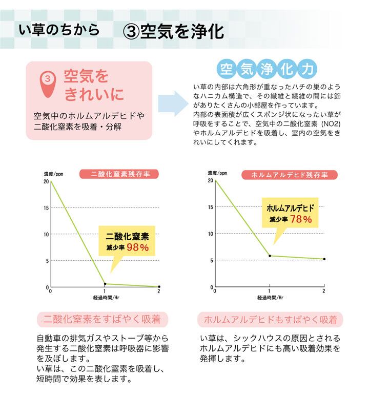 格子柄のシンプルない草ラグです。中材にはウレタンフォームを5mm使用し、ふっくらとしたふみ心地に仕上げました。フローリングでも底付き感を軽減してくれます。表地には撥水加工を施すことでちょっとこぼしてしまっても、さっと拭き取って清潔にご使用いただけるようにしました。またい草には空気の自然浄化作用、湿度の調節作用などがあります。こちらの商品はい草に青森ヒバ加工を施しています。(抗菌、防臭効果)