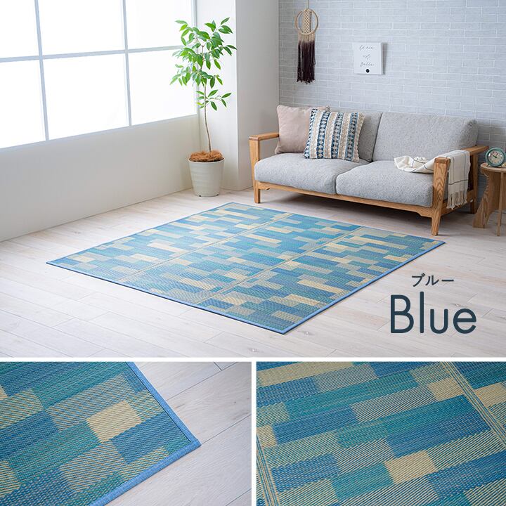 涼しげなカラーリングがお部屋を明るくしてくれるい草ラグ。