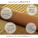 いろいろな織りを組み合わせたパッチワーク風のい草カーペットです。織り方によって違う複数の肌感触をお楽しみ頂けます。落ち着いた色目でモダンな雰囲気に仕上げました。国産(九州産)のい草を使用しています。一本一本が太く、表皮が厚く繊維がキメ細かいので弾力性があり、耐久性に優れています。い草には空気の自然浄化作用、湿度の調節作用などがあります。また汚れにくく、使用するうちに黄金色に変化し味が出ます。い草に青森ヒバ加工を施しています。(抗菌、防臭効果)