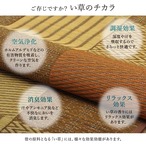 いろいろな織りを組み合わせたパッチワーク風のい草カーペットです。織り方によって違う複数の肌感触をお楽しみ頂けます。落ち着いた色目でモダンな雰囲気に仕上げました。国産(九州産)のい草を使用しています。一本一本が太く、表皮が厚く繊維がキメ細かいので弾力性があり、耐久性に優れています。い草には空気の自然浄化作用、湿度の調節作用などがあります。また汚れにくく、使用するうちに黄金色に変化し味が出ます。い草に青森ヒバ加工を施しています。(抗菌、防臭効果)裏にはフローリングを傷つけにくいよう不織布を貼っています。