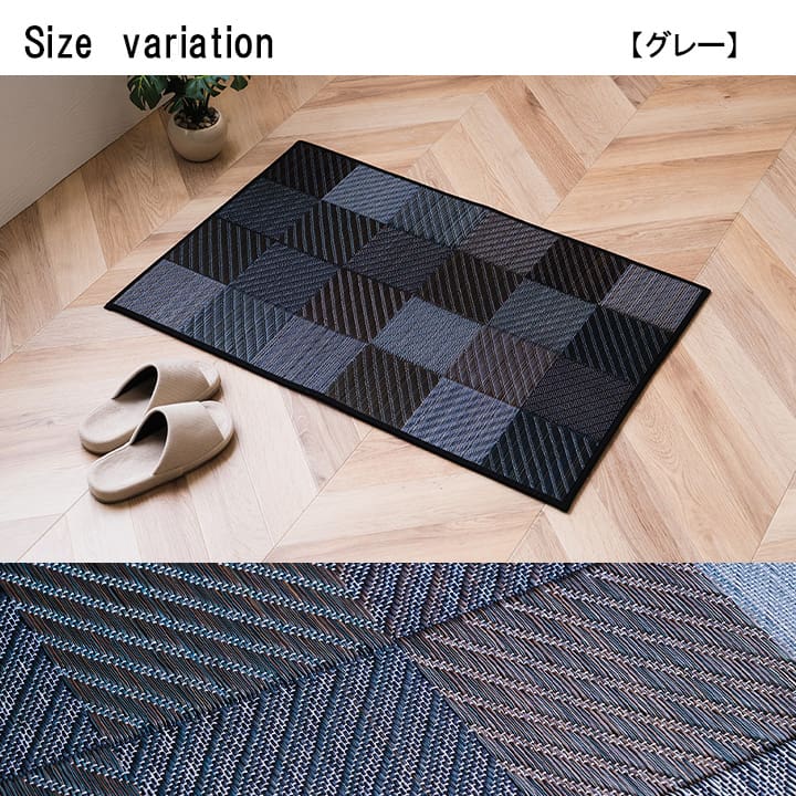 九州産のい草を使用した玄関マットです。一本一本が太く、表皮が厚く繊維がキメ細かいので弾力性があり、耐久性に優れています。また使用していくうちに綺麗な黄金色に変化していきます。い草には空気の清浄化作用、湿度の調節作用があり、汚れにくいといった特徴があります。青森ヒバ加工を施しています。(抗菌、防臭効果)裏には適度なクッション性があり、滑りにくい国産のウレタンを貼っています。