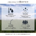 福岡県筑後地方の無形文化財「掛川織」の技法で織り上げた花ござです。掛川織は経糸の間隔に変化を付けた直線的な織り方で、上質な草だからこそ織れる格調の高さは特筆物。花ござの中でも特に高級品として重宝されてきました。大きな目と小さな目を交互に織り込んだ美しく洗練されたデザインが人気です。国産(九州産)のい草を使用しています。一本一本が太く、表皮が厚く繊維がキメ細かいので弾力性があり、耐久性に優れています。い草には空気の自然浄化作用、湿度の調節作用などがあります。青森産天然ヒバから抽出した植物由来成分で抗菌防臭加工をほどこしています。希少な国産い草を用いて、ベテラン職人が、長年の経験を活かし、国内工場で丹念に織りあげました。吸い込まれるような美しいグラデーションで草原と海を表現、まるで大自然の上にいるような雄大さを感じられます。