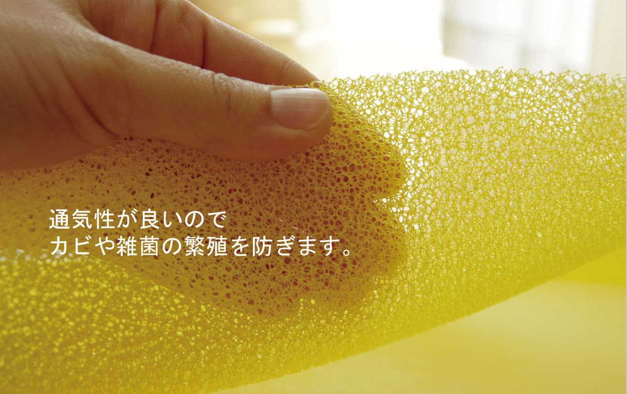 ウレタンフォームを特殊加工して通気性を良くしています。バスマットの乾きを促進するマットです。