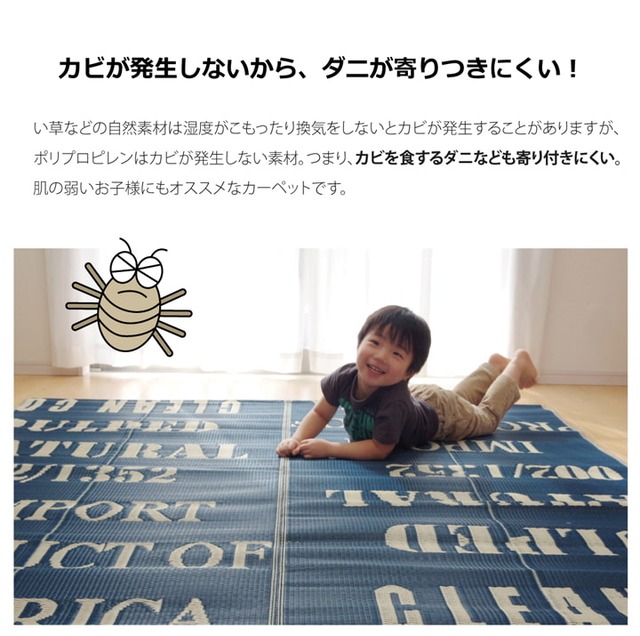 英国風のデザインを施したPPカーペットです。シンプルでカジュアルにまとめることで1人暮らしの方やアクセントラグとしてもご使用いただけるデザインにしました。ポリプロピレン素材を細いパイプ状にして織り込んでいます。アトピー協会推奨品としても認定されており、また強度が高くしっかりとしています。汚れても水洗いができるので、いつでも清潔にお使い頂けます。お子様の部屋に、アウトドアに、ペットのいるご家庭に最適な万能カーペットです。小さく折りたたむことが可能なコンパクトタイプです。収納時にも場所を取りませんので、アウトドア等に便利な商品です。