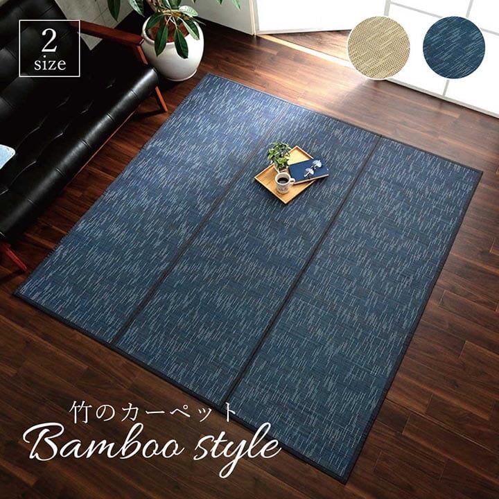 シンプルなデザインで年間使用しやすいバンブーラグです。縦糸にカラー糸を使用し飽きの来ない無地調のデザインが特徴です。竹には抗菌防臭効果・消臭効果・防汚効果があり、清潔な状態を保てます。耐久性に優れており、ペットのいるご家庭にもオススメです。竹は他の木材と比べると格段に成長が早く(3〜5年で成竹)、持続的生産が可能な環境に優しいサスティナブルな素材です。コンパクトに畳めるため収納も可能です。裏面は不織布で床を傷つけません。