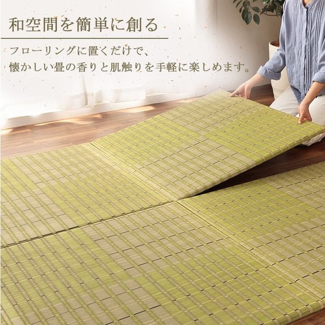 フローリングに置くだけ。なつかしい畳の香りと肌ざわりを手軽に楽しめます。