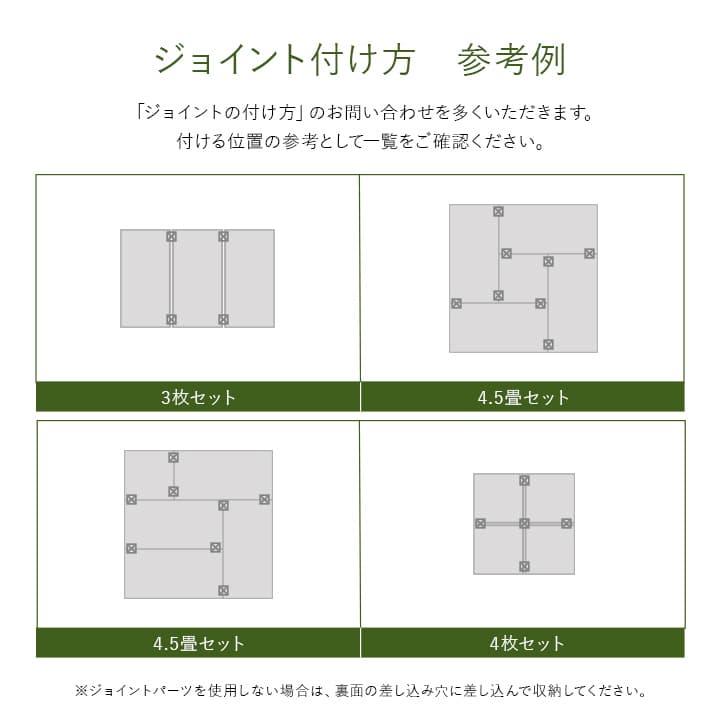 裏には連結用のジョイントで隣り合った畳がズレないよう固定することが可能です。