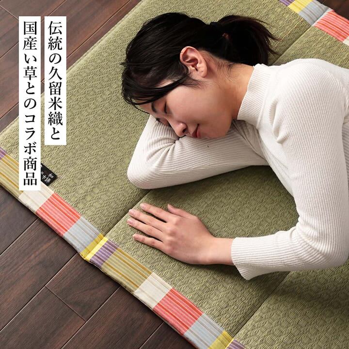 い草は和のイメージが強く使用シーンが限定されやすいですが、この商品では久留米織のヘリにより和室でも洋室でも合わせやすい見た目になっております。