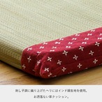 ■ヘリにインド綿生地を刺し子調に織り上げた生地を使用したおしゃれない草座布団です。和室にも洋室にも合うデザインです。