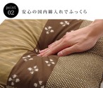 綿100%和柄の座布団です。小さめサイズでクッションとしてもご使用頂けます。綿は繊維の中でも特に肌触りがよく、季節を選ばずオールシーズンご使用頂けます。和風の雰囲気のある柄なので家のリビングだけでなく、お店(居酒屋、和風の飲食店など)にもおススメです。国内でわた入れ加工を行っております。ふっくら柔らかな座り心地です。※本商品の側地部分の取り外しはできません。