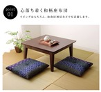 綿100%和柄の座布団です。綿は繊維の中でも特に肌触りがよく、季節を選ばずオールシーズンご使用頂けます。和風の雰囲気のある柄なので家のリビングだけでなく、お店(居酒屋、和風の飲食店など)にもおススメです。国内でわた入れ加工を行っております。ふっくら柔らかな座り心地です。※本商品の側地部分の取り外しはできません。