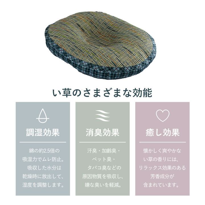 チェック柄のおしゃれない草の楕円座クッション。