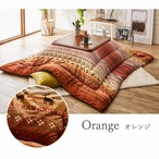 かわいらしいギャッベ柄をモチーフにした大人かわいいこたつ布団です。繊細なプリントが特徴です。表地には肌触りのよい短毛のマイクロファイバーを使用しています。部分暖房のコタツは電気代もおトクです。