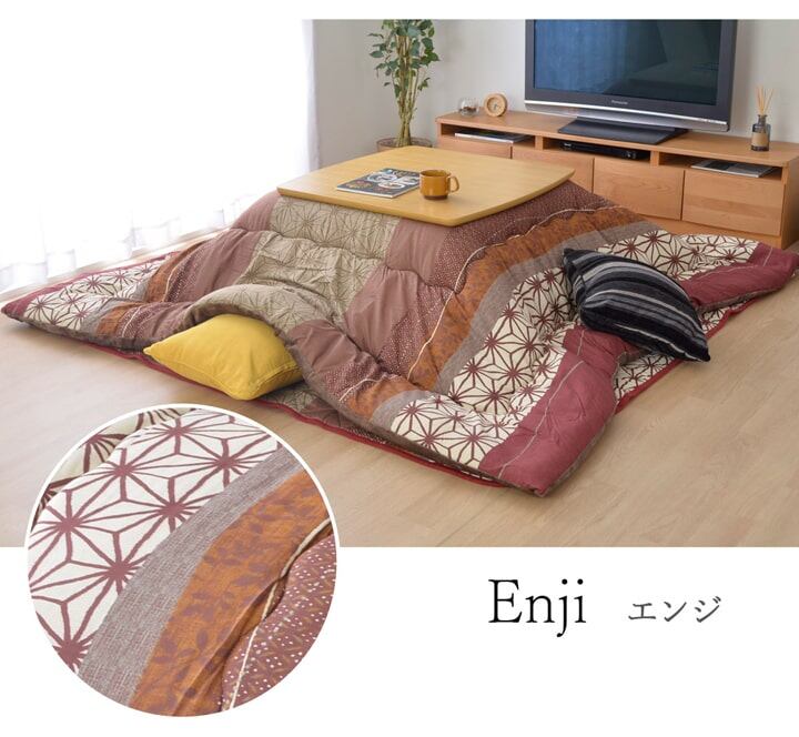 やわらかな肌触りのピーチスキン加工を使用したこたつ布団です。優しい肌触りが特徴です。裏地にはあたたかく、ふんわりとなめらなタッチ感のフランネルを使用しています。部分暖房のこたつは電気代もお得です。