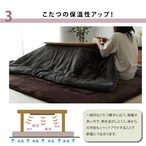こたつ布団でごろんと横になりゆっくり過ごしたい方にお勧めのこたつ布団敷きです。通常よりも30cmほど大きくすることでこたつ布団に入ったままごろんと横になっても体がはみ出にくい大きさにしました。中綿には固綿を30mm使用し、ふっくらとしたボリュームを、表地には滑らかなタッチ感のフランネルを使用することでゆったりこたつライフをお楽しみいただけます。